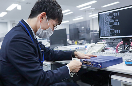 インフラエンジニアとして、主にサーバの構築・運用・保守を行っています。お客様のご希望に応じて、Webサーバやメールサーバなどを構築し、トラブルが発生した際には障害対応を担当しています。また、PCの導入や入れ替え時に、お客様がすぐに業務を開始できるように、要望に合わせた設定やアプリのインストールを行うキッティングも業務の一環です。