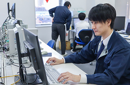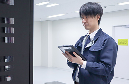 データセンターでオペレータ業務を担当しています。データセンターにはお客様のサーバーなど多数機器が設置してあり、その機器の監視を主に行っています。またデータセンターの設備である空調や電力など問題がないか日々確認しています。お客様の業務に直接影響する仕事なので、チェックや故障時の対応は丁寧に行うよう心がけています。